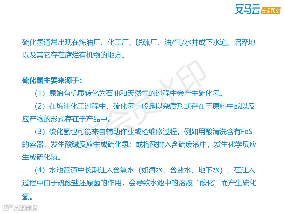 含硫化合物的生产制造如对硫磷、乙硫磷、乐果、磺胺等;石油化工、煤化工、天然气化工、橡胶硫化过程等均可产生硫化氢。