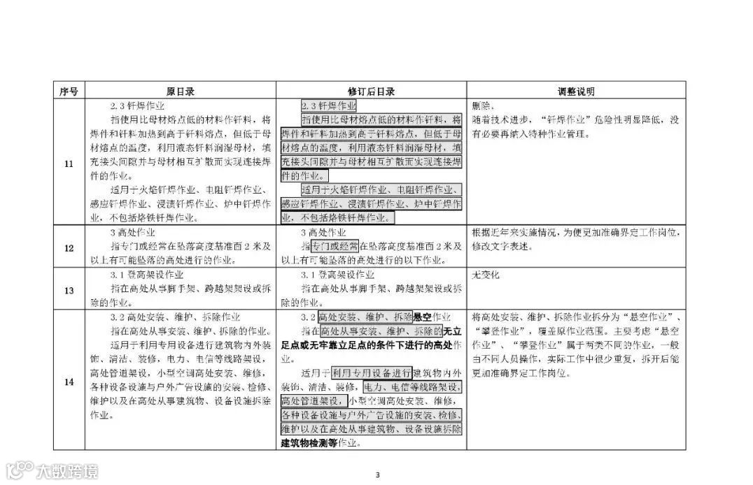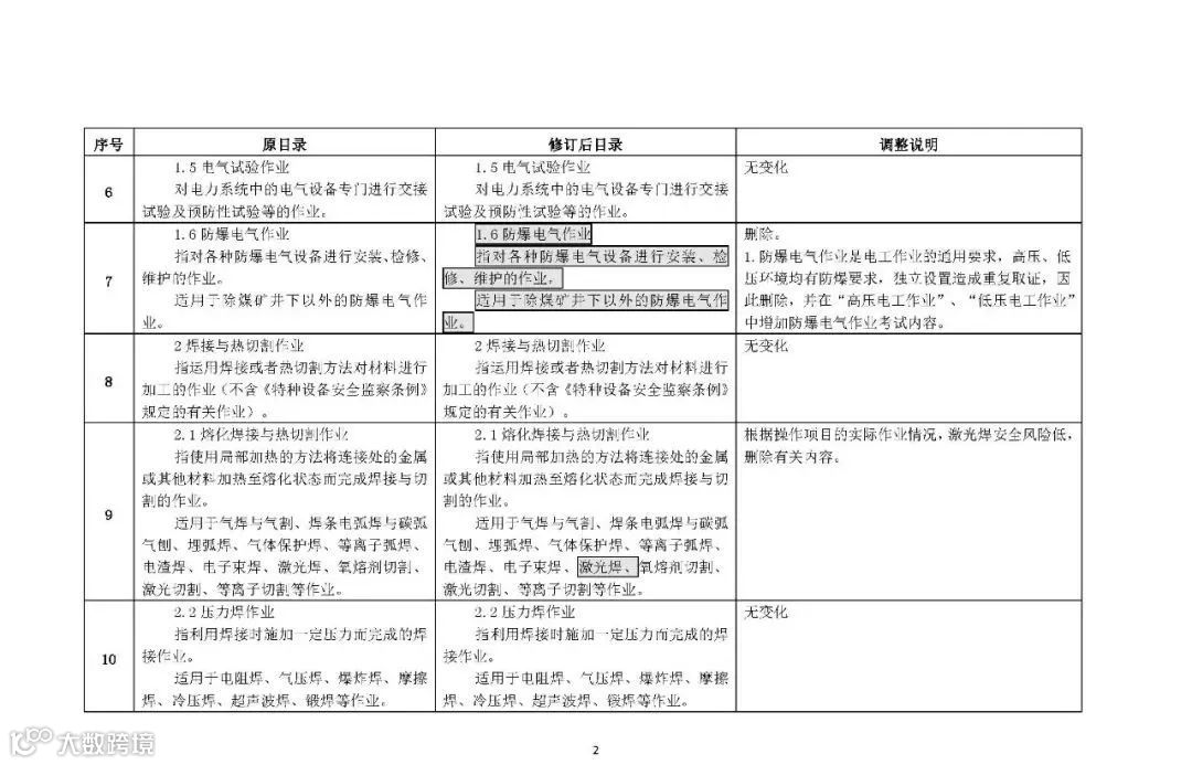 1.在焊接与热切割作业类别中,“熔化焊接与热切割”操作项目的适用范围中删去了“激光焊”。