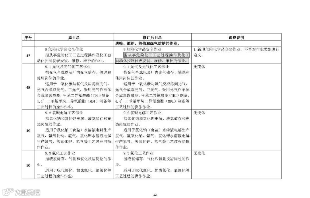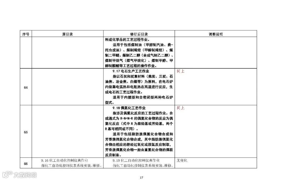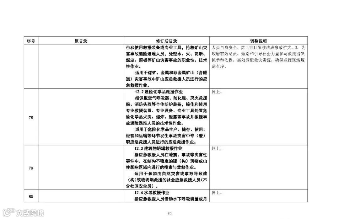 修订后的目录包括12个作业类别,66个操作项目(其中包括“有限空间监护作业”、“重点监管的危险化学品仓储作业”)。