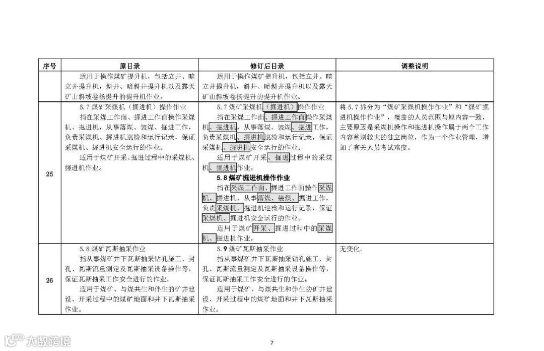 4.在煤矿安全作业类别中,将原“煤矿采煤机(掘进机) 操作作业”拆分为“煤矿采煤机操作作业”“煤矿掘进机操作作业”2个操作项目。