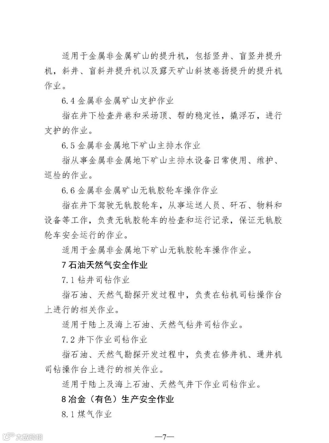 6.在冶金(有色)生产安全作业类别中,修改完善了“煤气作业”操作项目定义和适用范围。