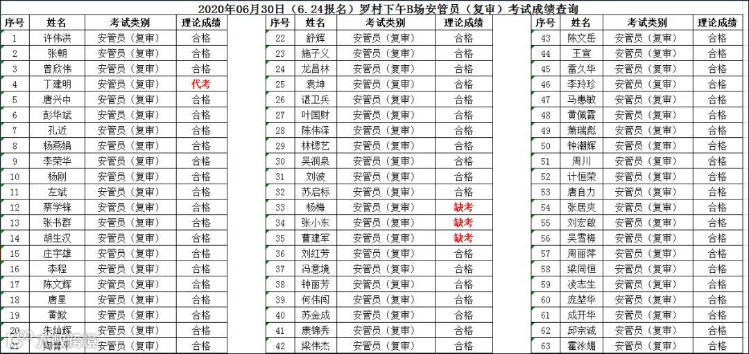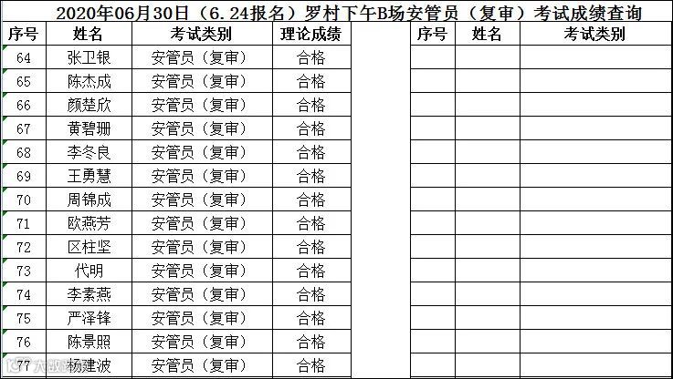 2020.06.30(6.24报名)罗村下午B场安管员复审考试成绩