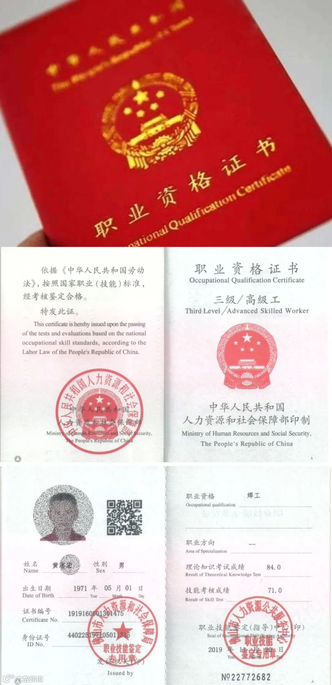 (三)参赛者理论和技能成绩均达到60分及以上且未取得相应工种等级职业资格证书的,由佛山市人力资源和社会保障局核发(电工、焊工、钳工、中式面点师)职业(工种)《国家职业资格三级(高级工)》证书。