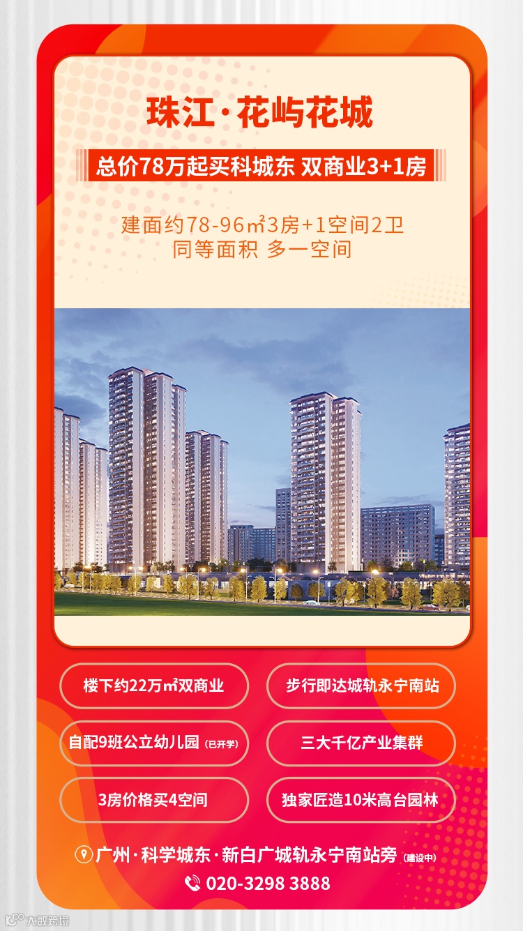 免责声明:1、本宣传资料仅为要约邀请 ,所有文字和图片仅供参考,不作为开发商的销售承诺及要约内容,买卖双方权利义务均以实际签订的商品房合同约定为准。2、本宣传资料对周边环境、政府规划、商业配套、教育资源、地铁、城轨、高速、投资前景等信息为截止于2025年4月的情况,有关介绍仅为提供相关信息,并不作为开发商的销售承诺和要约内容,前述信息可能因政府规划调整及开发商无法控制、预测原因而出现变化,以最新公布的政府文件及相关官方信息为准。3、本宣传资料对项目周边幼儿园、学校等教育配套资源的介绍旨在提供相关信息,并不意味着本公司对就学安排做出承诺。教育资源的名称、办学性质、办学规模、学位位置、开学(班)时间、招生条件、收费标准及招生区域存在调整的可能,应以教育主管部门及办学方颁布的政策规定为准。4、部分图片来源网络,如有侵权,请联系删除。5、本活动宣传推广细则以楼盘现场执行政策为准。活动礼品领取以各楼盘现场实物及政策为准,数量有限,领完即止,开发商保留对宣传资料更新、修改的权利,敬请留意最新宣传资料。6.本宣传资料解释权,在相关法律范围内归广州珠实地产有限公司及旗下项目开发商所有。宣传资料制作时间:2025年4月。