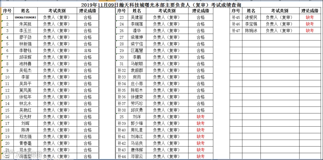2019.11.09曙光本部主要负责人(复审)考试成绩查询
