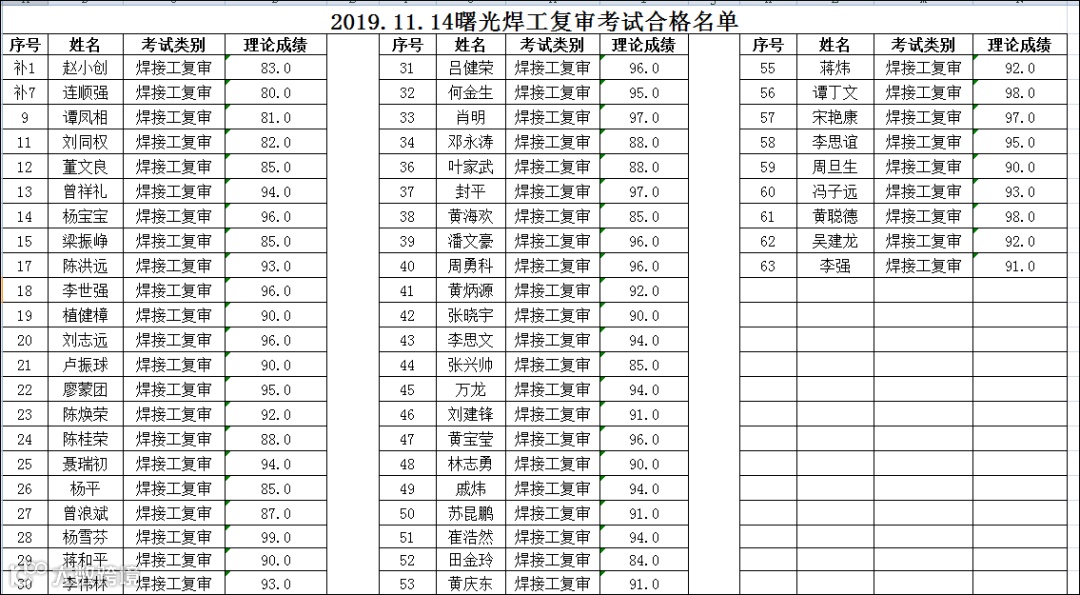2019.11.14曙光焊工(复审)考试合格名单