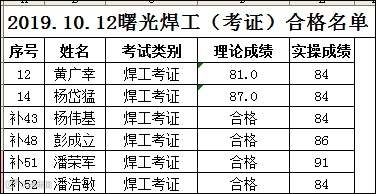 2019.10.12曙光焊工(考证)考试合格名单