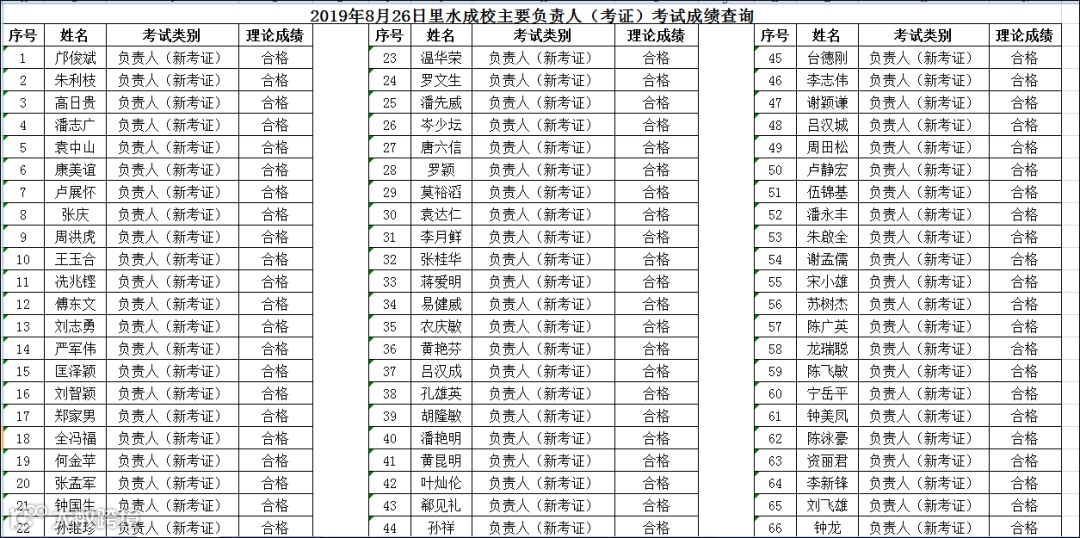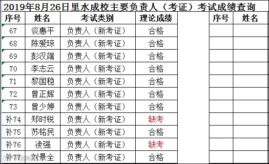 2019.08.26里水成校主要负责人(考证)考试成绩查询