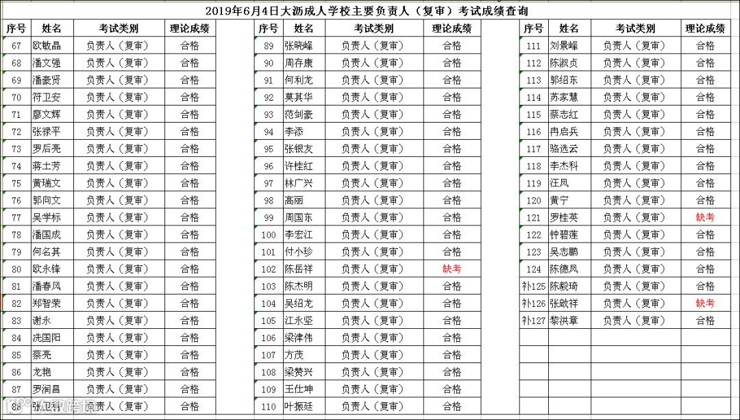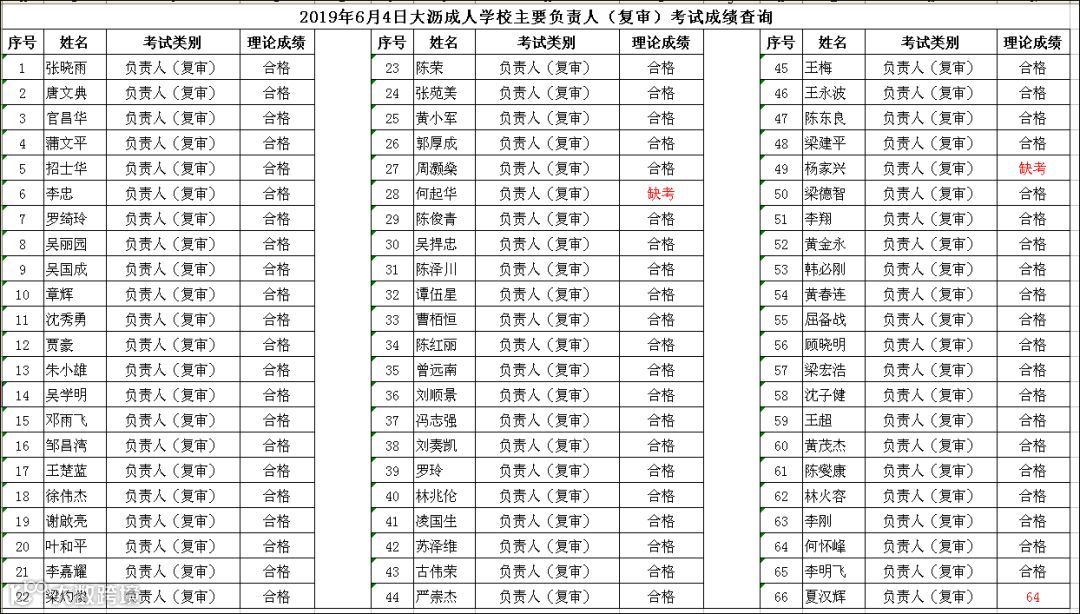 2019.06.04大沥成人学校主要负责人(复审)考试成绩查询