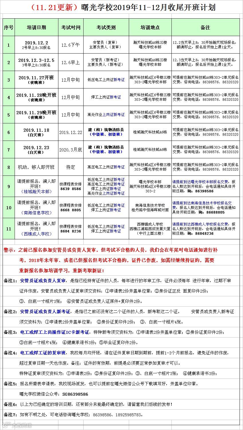 2019的收尾班补考班,请各有需要持证单位个人把握时间,提前做好培训安排了.....