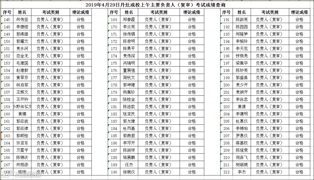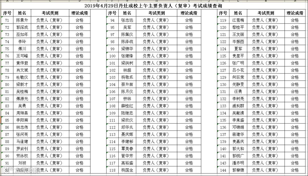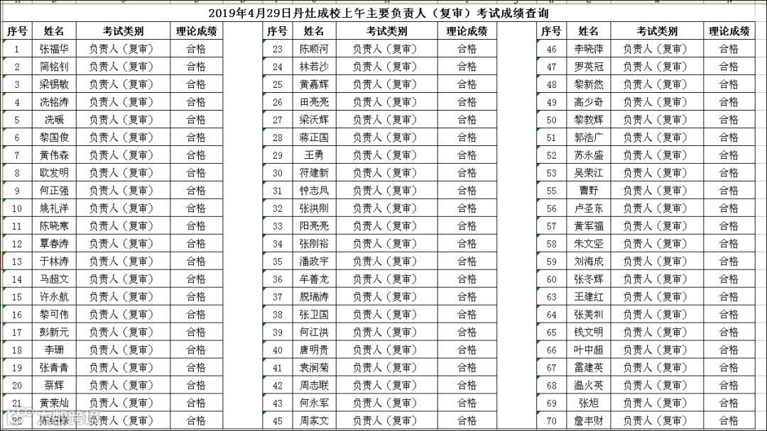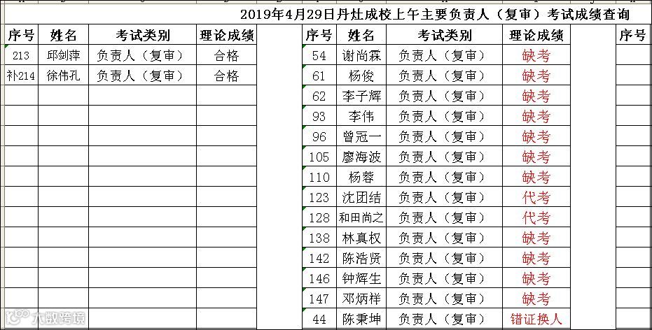 (上午场)2019.04.29丹灶成校主要负责人(复审)考试成绩查询