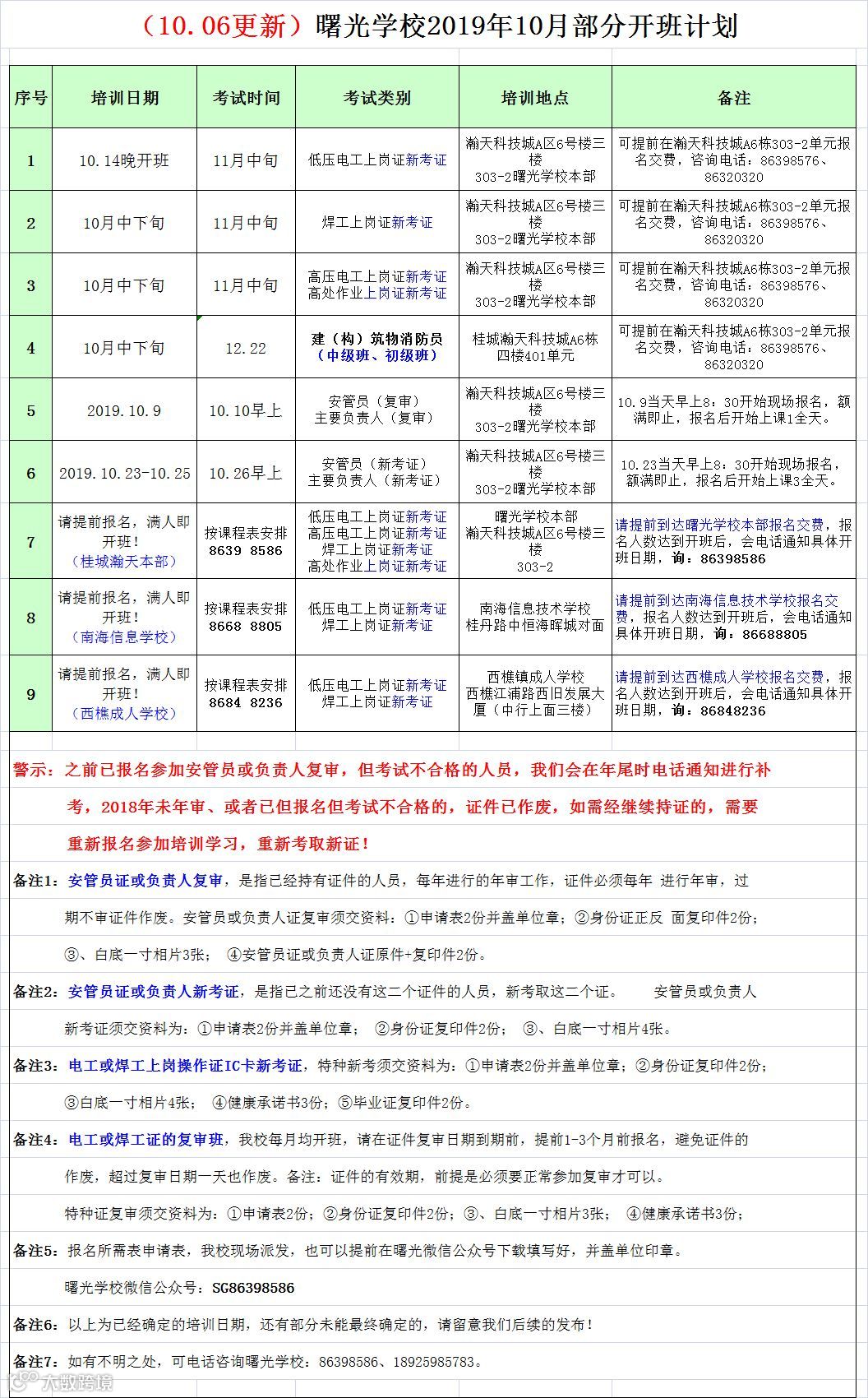 国庆小长假过完了,接着的假期只有元旦连着春节了,今年1月24日就是除夕了哦,是不是感觉虽然每天很不易但每年都很快呢?2019的时光已走过大半临近尾声,为方便今年有继教需要的企业和个人考证复审等,安管员及负责人复审及新考证培训10月份继续开班,但这二证培训今年已属收尾即将结束,请各有需要持证单位个人抓紧时间参加新考证或复审培训安排了。