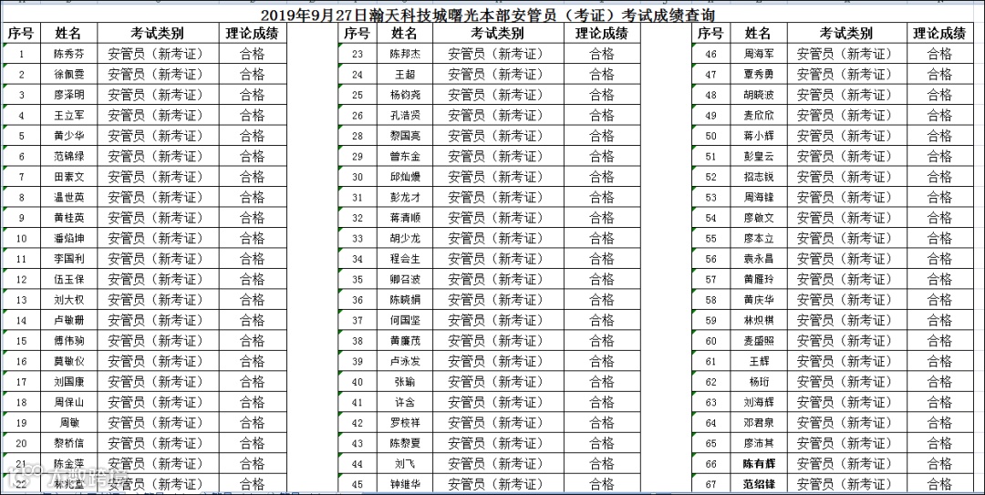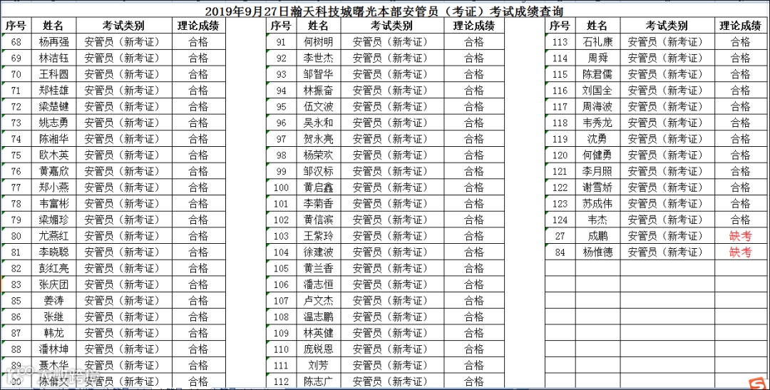2019.09.27曙光本部安管员(考证)考试成绩查询