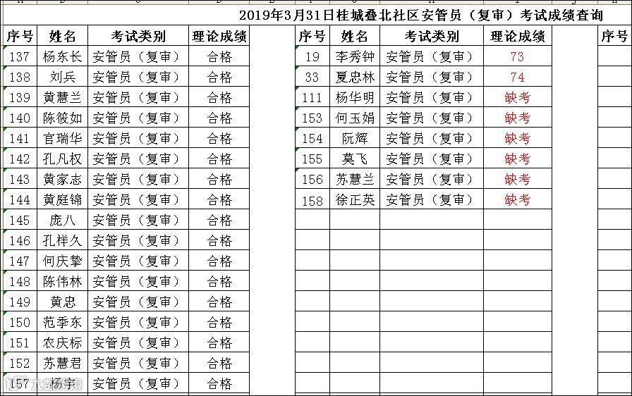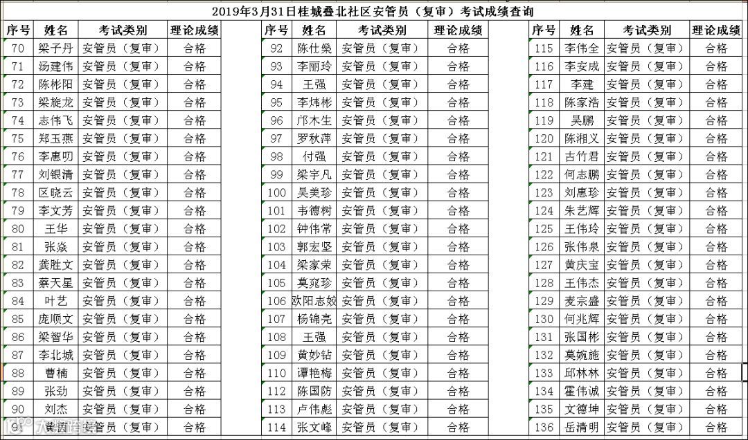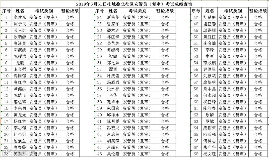 2019.03.31桂城叠北社区安管员(复审)考试成绩查询