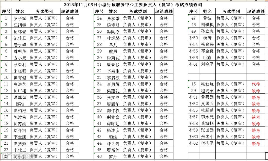 导读:2018.11.06小塘行政服务中心主要负责人(复审)考试成绩查询