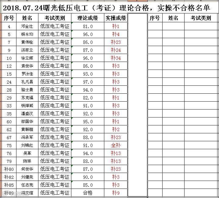 2018.07.24曙光低压电工(考证)考试理论合格,实操不合格名单