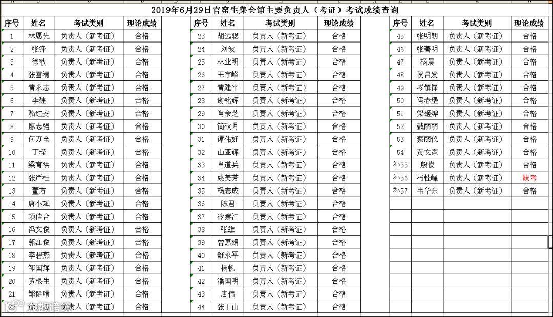 2019.06.29官窑生菜会馆负责人(考证)考试成绩查询