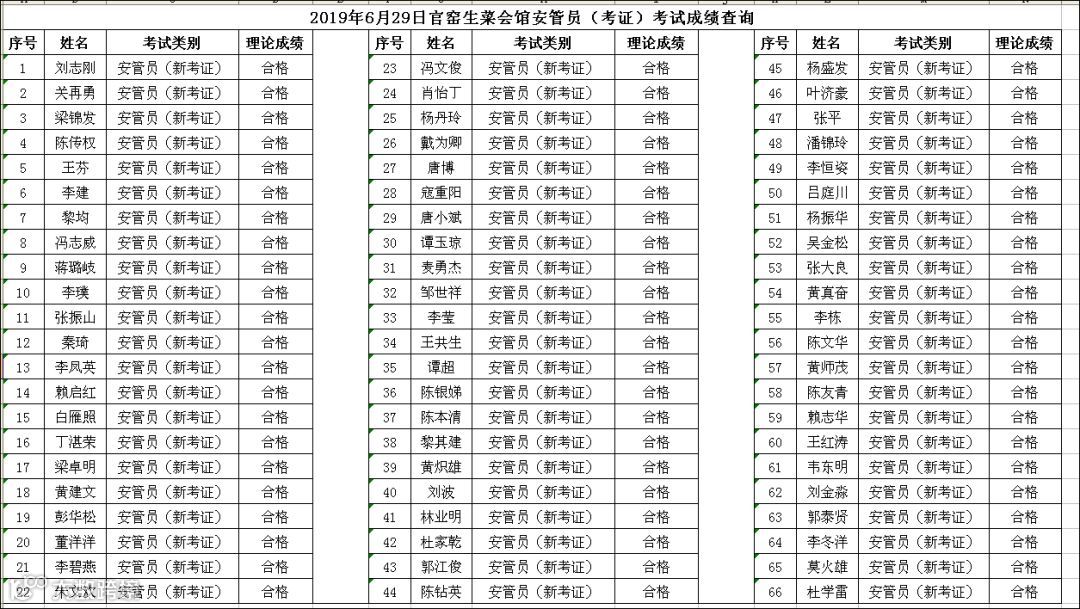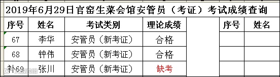 2019.06.29官窑生菜会馆安管员(考证)考试成绩查询
