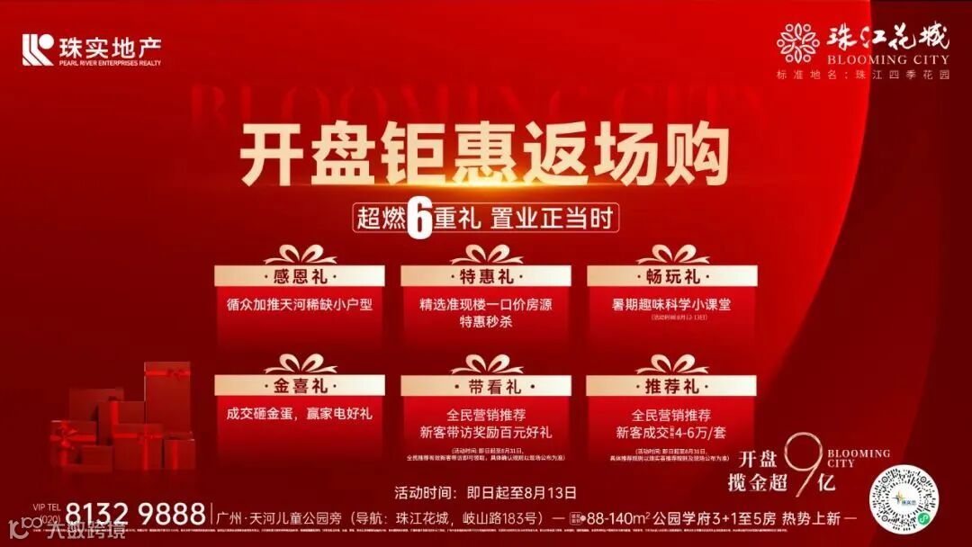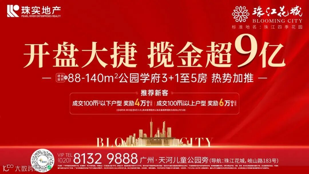 天河现象级顶流红盘——珠江花城,7月底推新揽金超9亿,上周揽金再破亿,鉴证了天河销冠大盘的硬核实力。