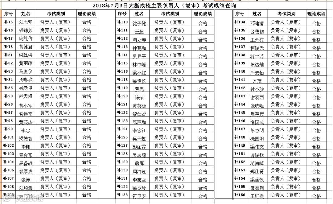 2018.07.03大沥成校主要负责人(复审)考试成绩查询