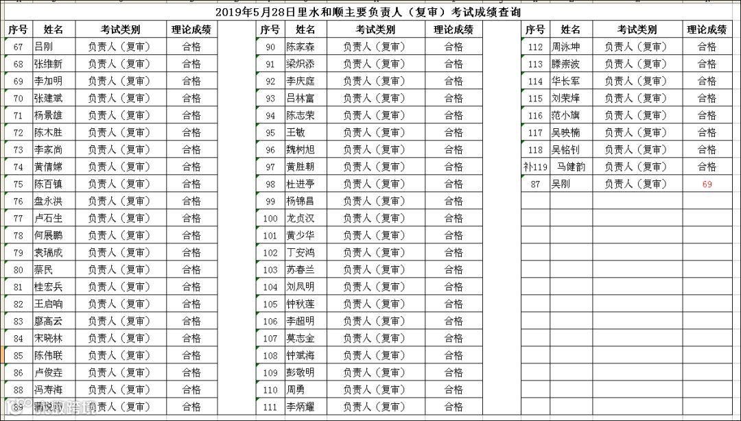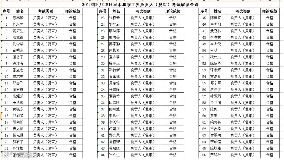 2019.05.28里水和顺主要负责人(复审)考试成绩查询