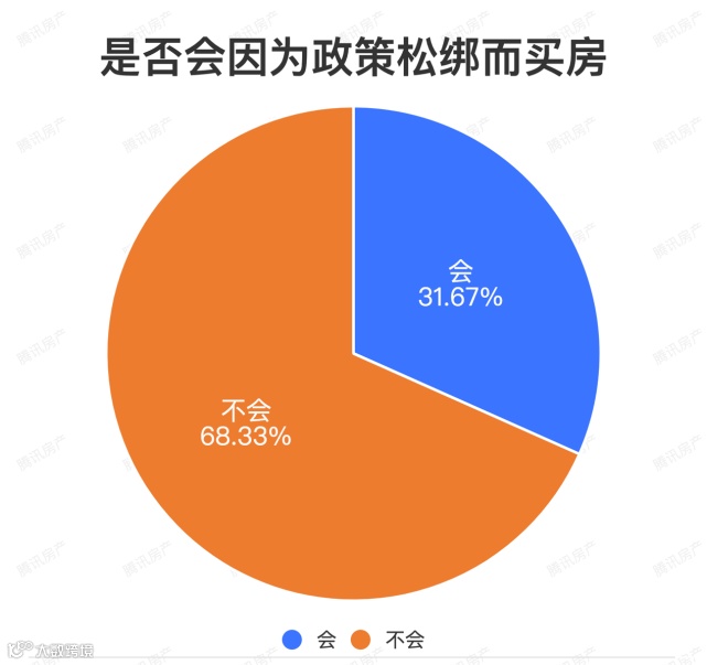 对于“是否会因为楼市政策松绑而买房”,据腾讯房产数据统计,31.67%的访客表示会因政策松动而买房。