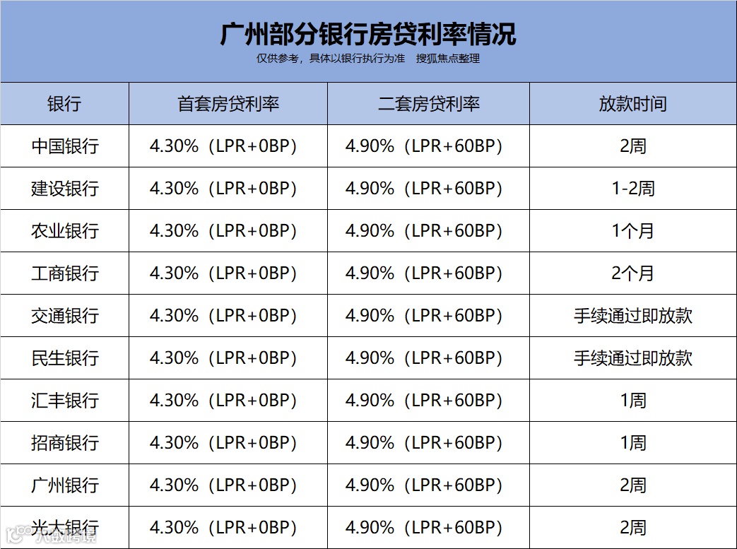 纵观目前广州各大行房贷利率情况,整体以首套4.30%(LPR+0BP),二套4.90%(LPR+60BP)为主流,且最快可一周内放款。而4.30%的首套房贷利率,也是近十年来的利率水平低点。从这一点看,目前买房成本还是比较低的。