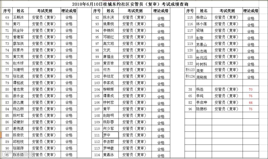 导读:2018.06.10桂城东约社区安管员(复审)考试成绩查询