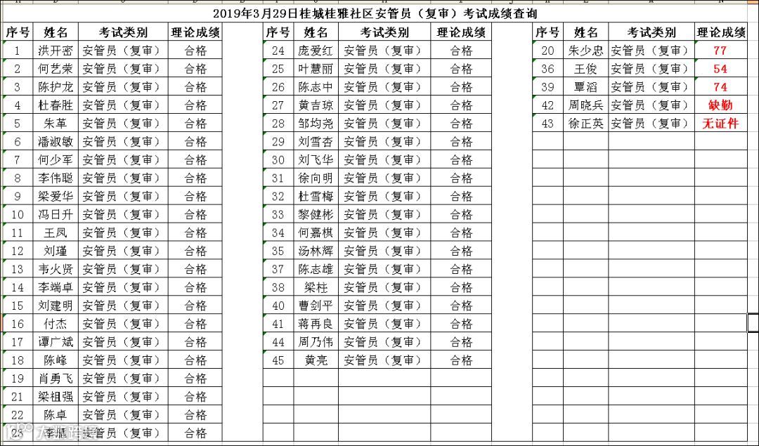 2019.03.29桂城桂雅社区安管员(复审)考试成绩查询
