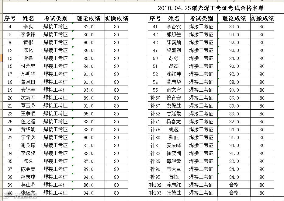 2018.04.25曙光焊工(考证)考试合格名单