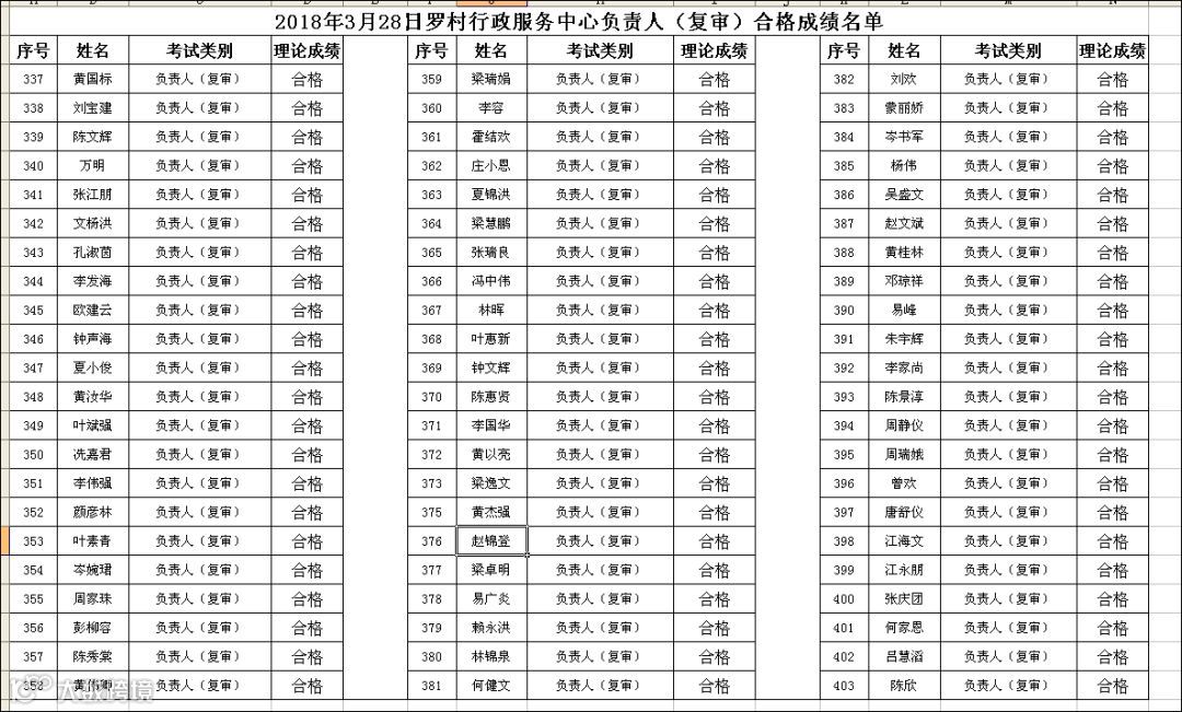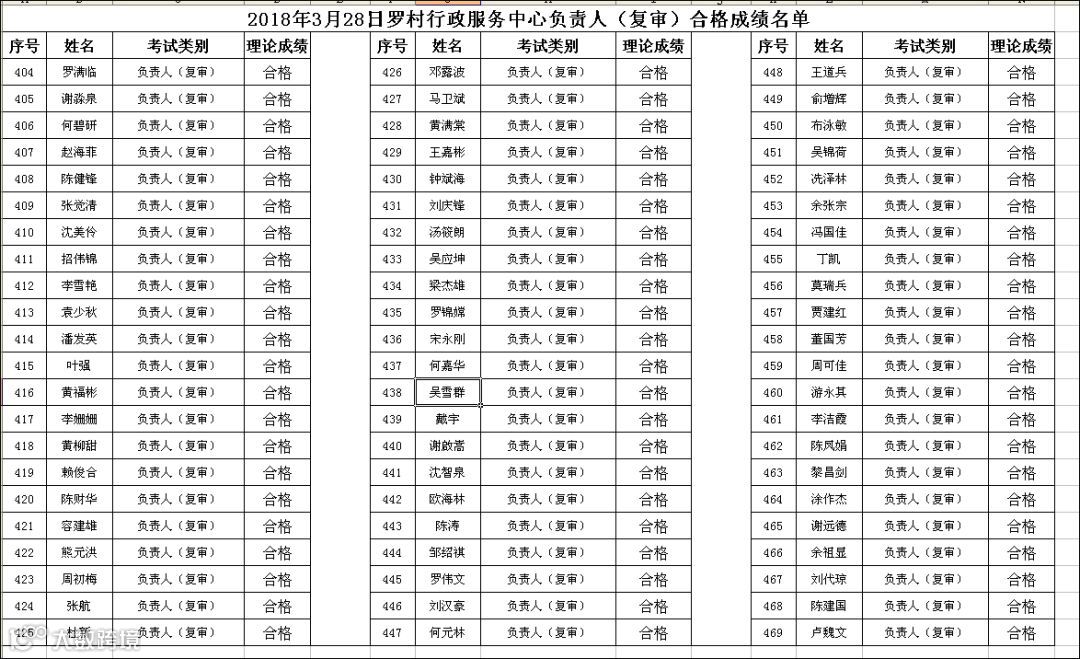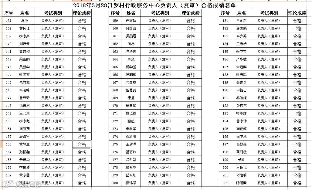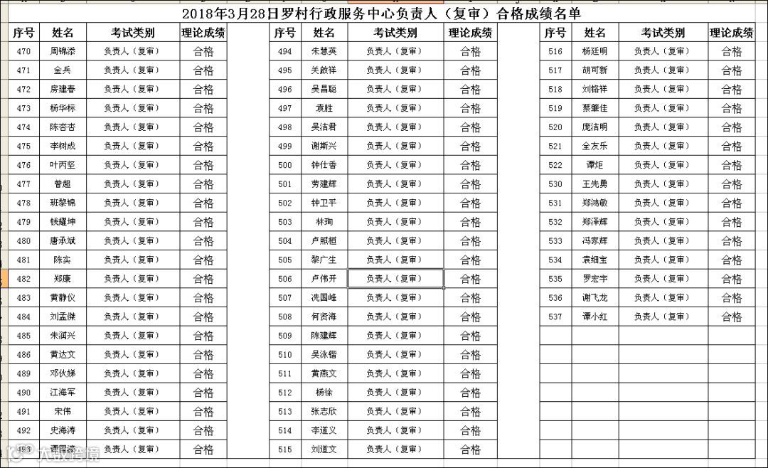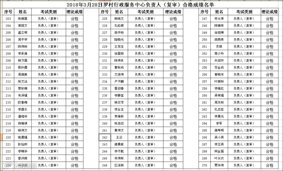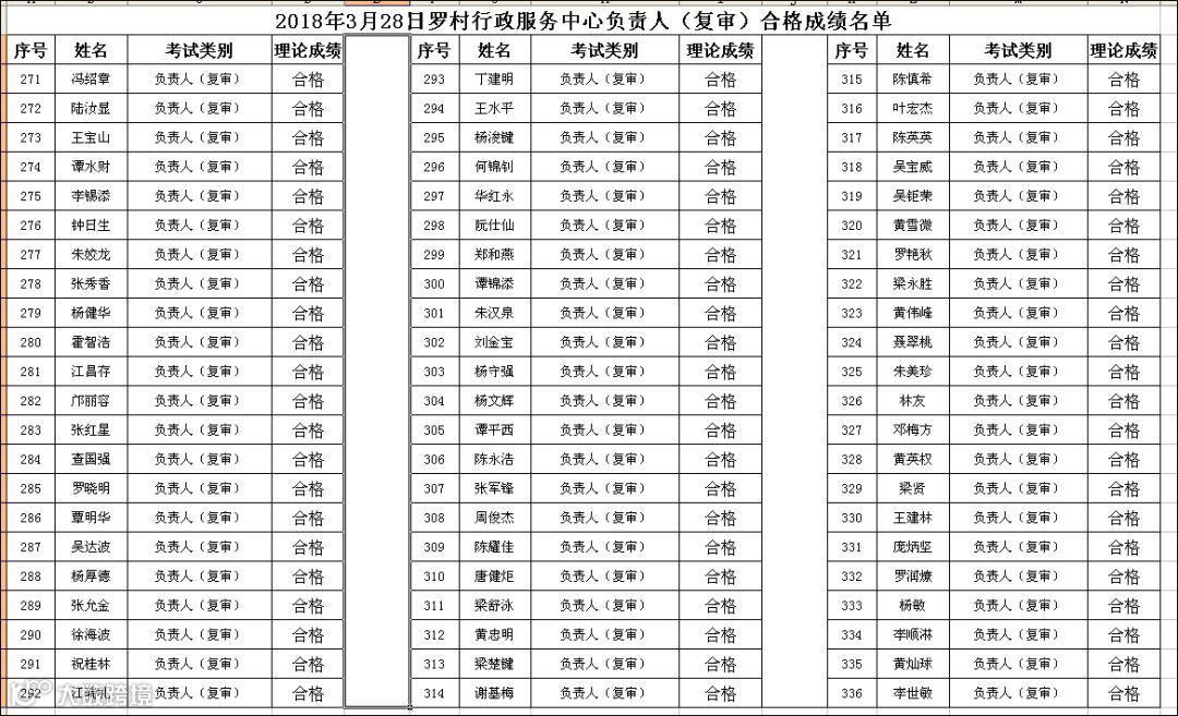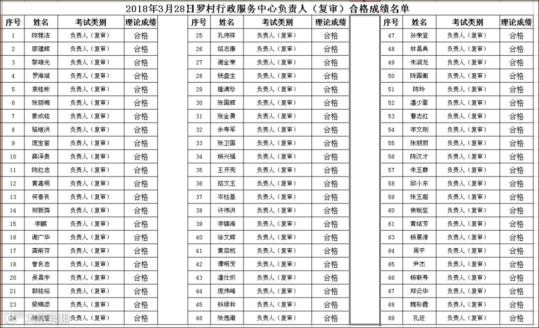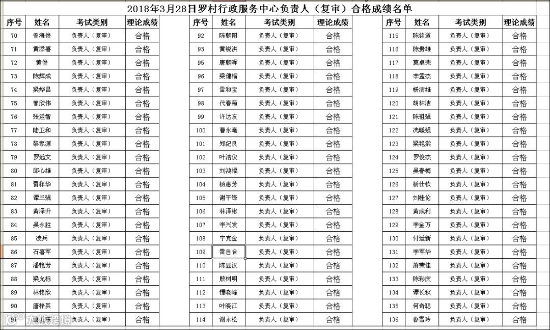 2018.03.28罗村行政服务中心负责人(复审)考试合格名单