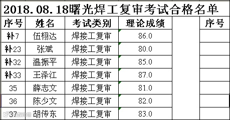 2018.08.18曙光焊工复审考试合格名单