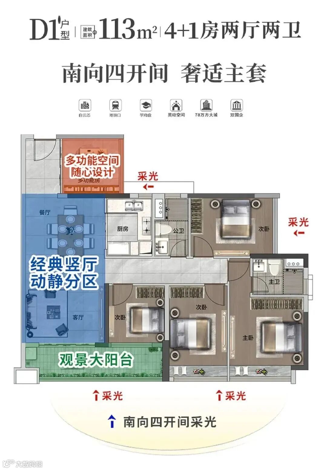 多一室空间,可以是孩子的兴趣天地、长辈的休息空间,亦可打造成书房,自成一方天地……无论是二孩家庭,还是三代同堂,皆可满足欢聚一堂的居住需求,避免了居者未来置换的烦恼,让幸福生活一步到位。