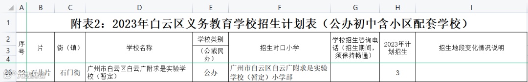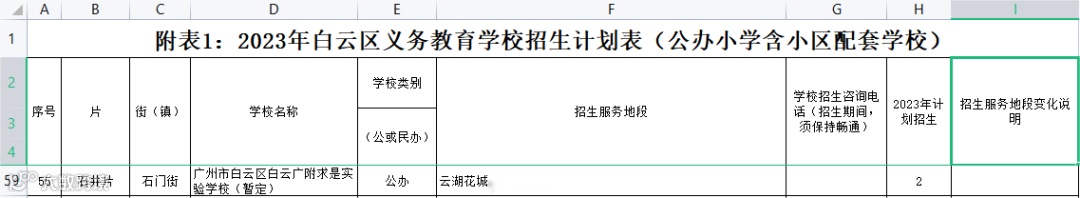 信息来源: 广州市白云区教育局关于印发《广州市白云区2023年义务教育阶段学校招生计划》的通知。