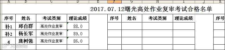 2017.7.12高处作业复审合格名单