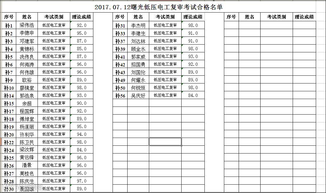 导读:2017.7.12低压电工复审合格名单