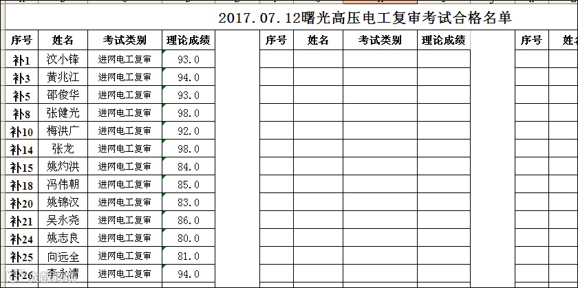 2017.7.12高压电工复审合格名单