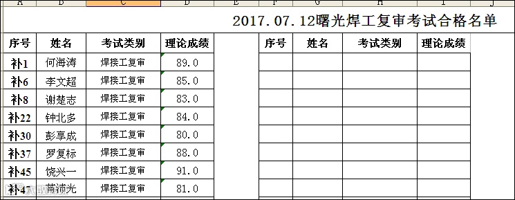2017.7.12焊工复审合格名单
