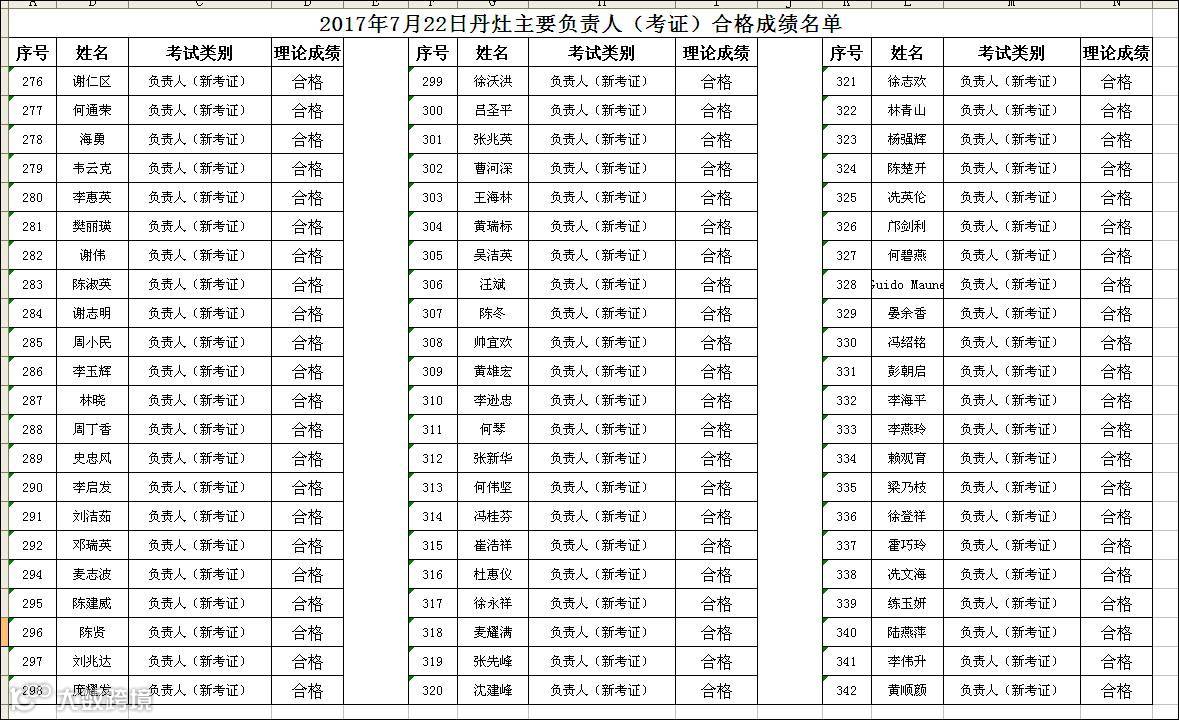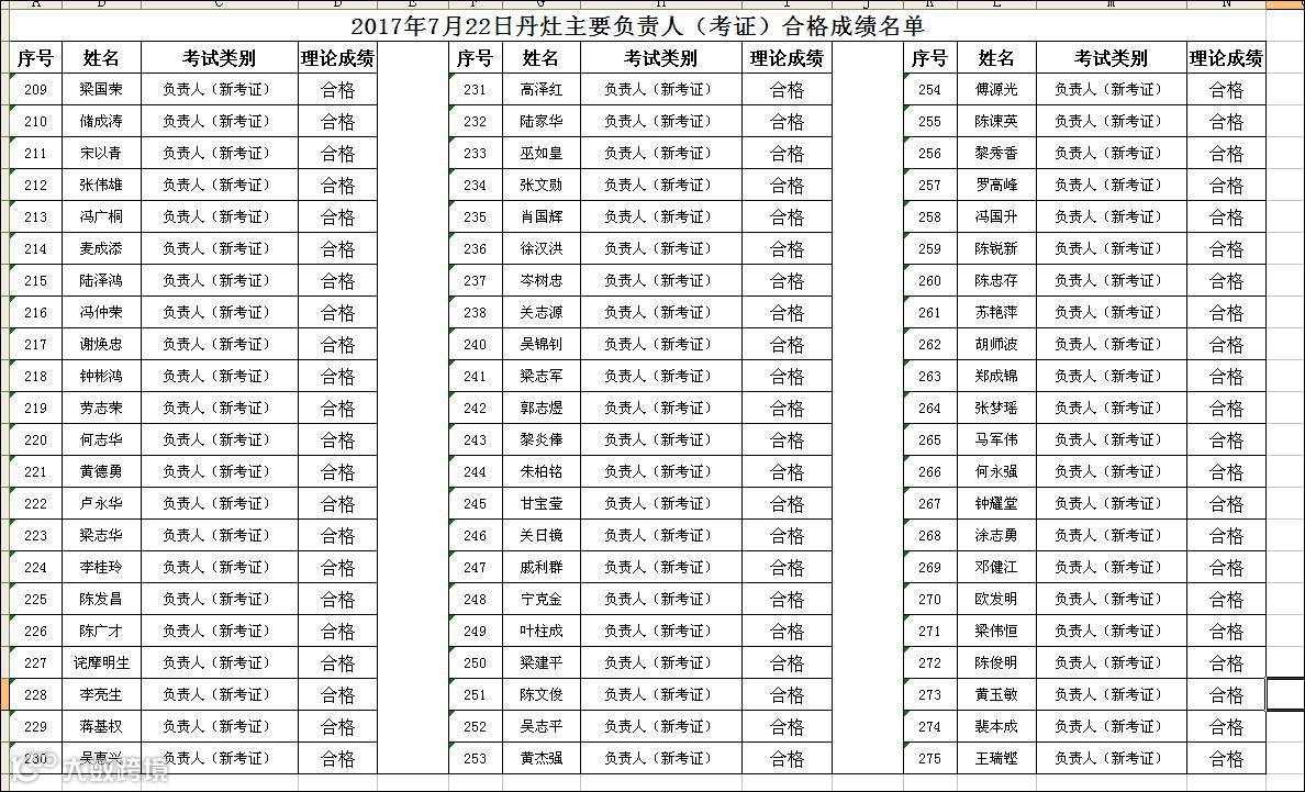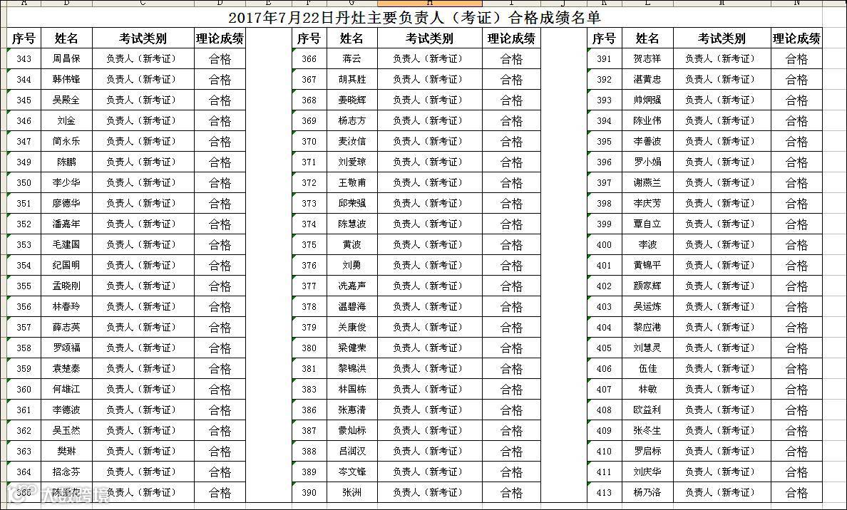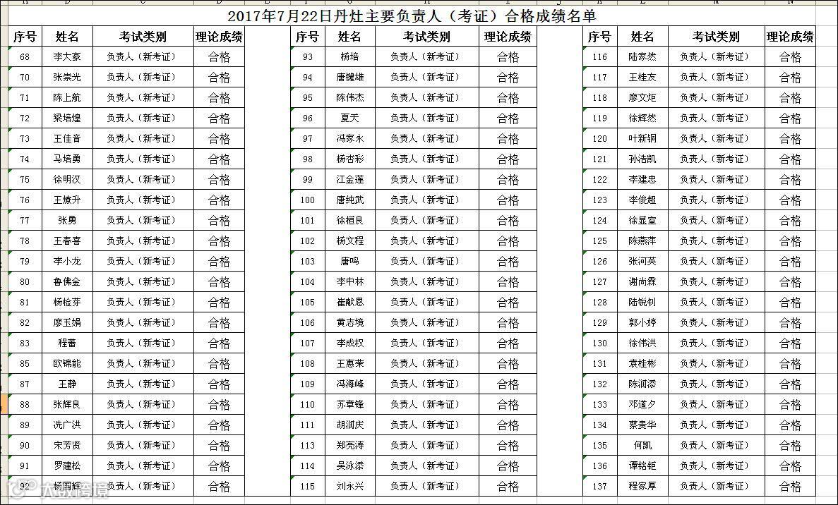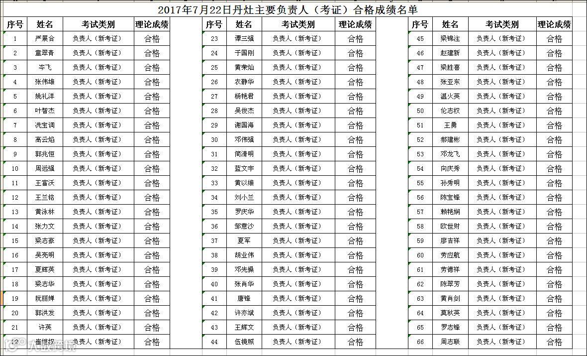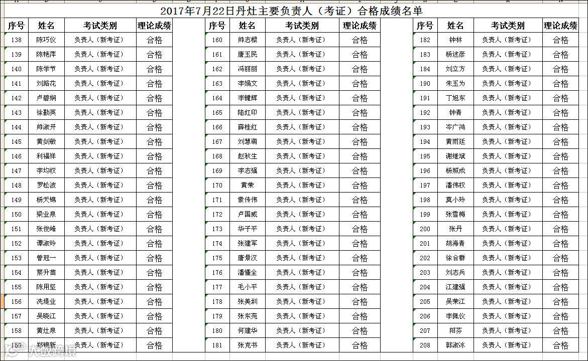 导读:2017.07.22丹灶成校主要负责人(考证)合格名单