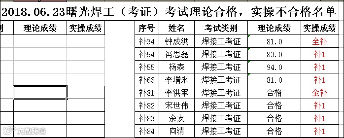 2018.06.23曙光焊工(考证)考试理论合格,实操不合格名单