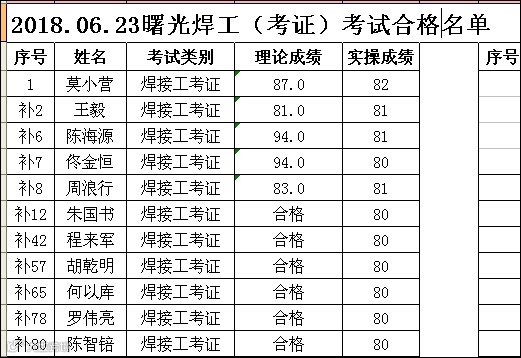 2018.06.23曙光焊工(考证)考试合格名单
