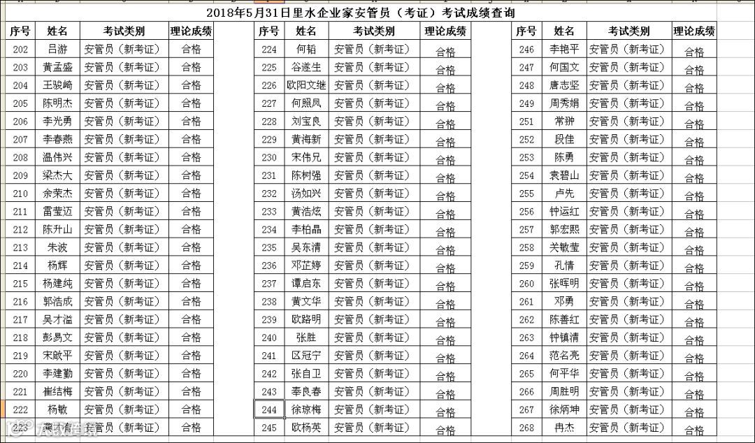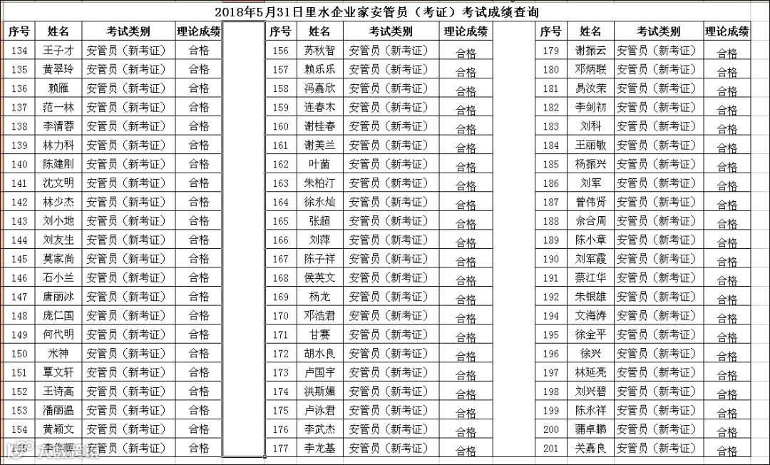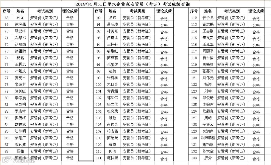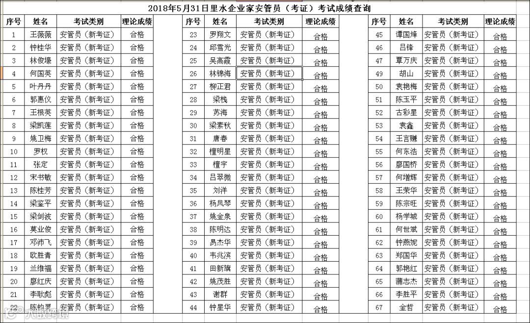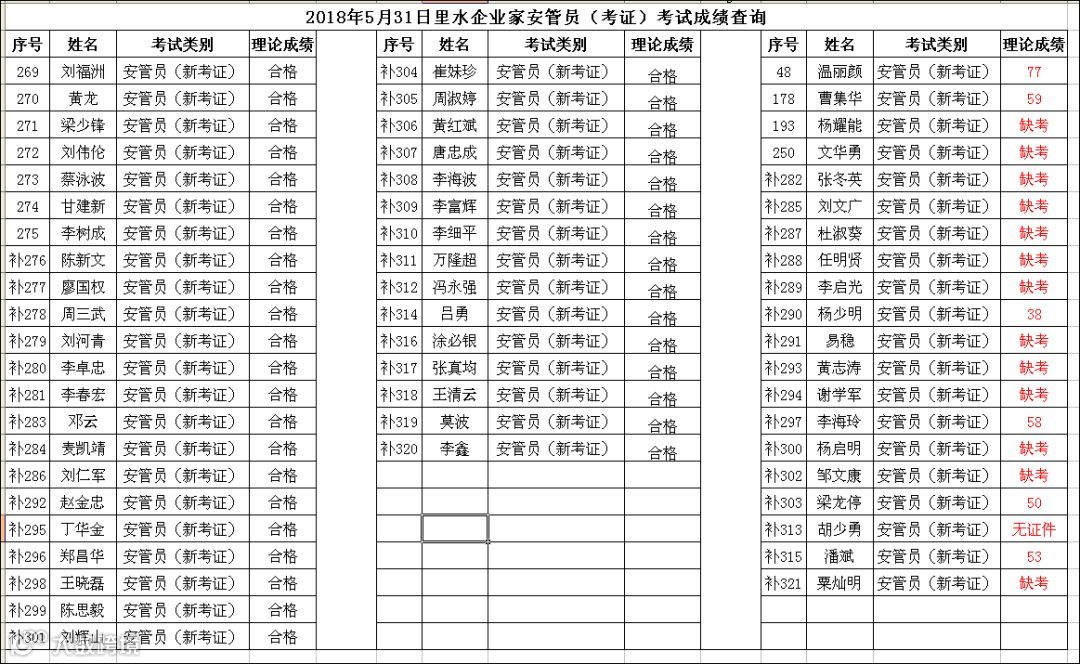导读:2018.05.31里水企业家安管员(考证)考试成绩查询