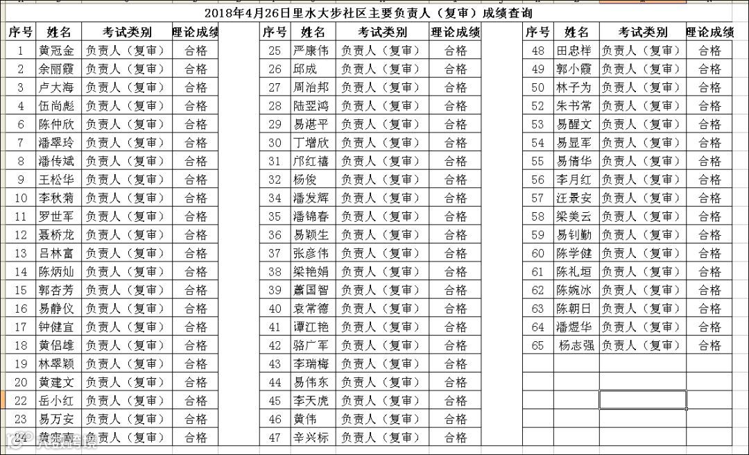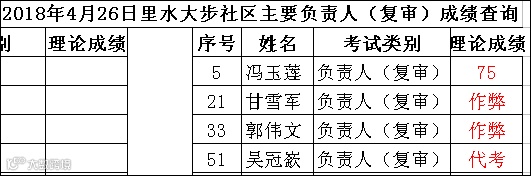 导读:2018.04.26里水大步社区主要负责人(复审)考试成绩查询