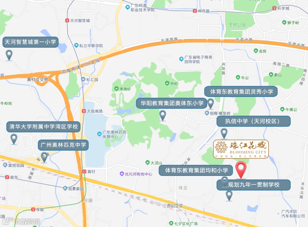 除了优质的小学资源外,距离珠江花城仅约1公里处,还有广州四大名校之一的执信中学天河校区目前已开学。