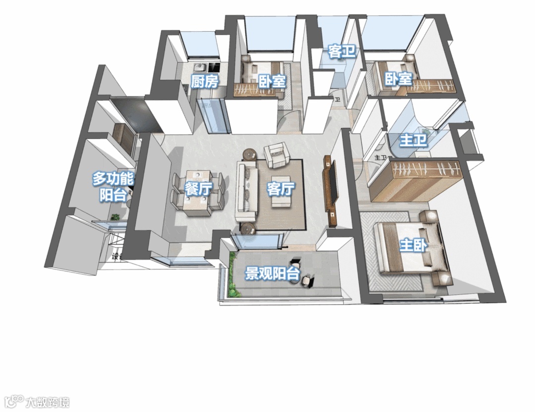 经典竖厅同样做到3+1房,三开间采光。市面上三房的面积打造出四房的空间效果,却又妥善地保留了居住舒适性,比市面上传统的三房户型节省更多面积,切实地将空间利用率提高到了极致。