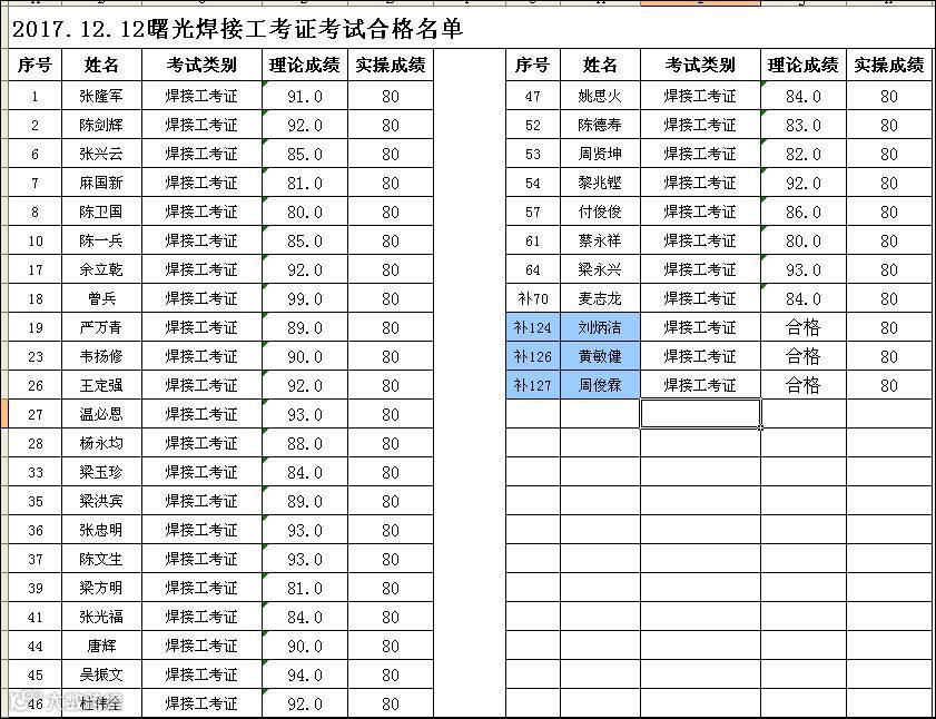 2017.12.12曙光学校焊工(新考证)成绩合格名单