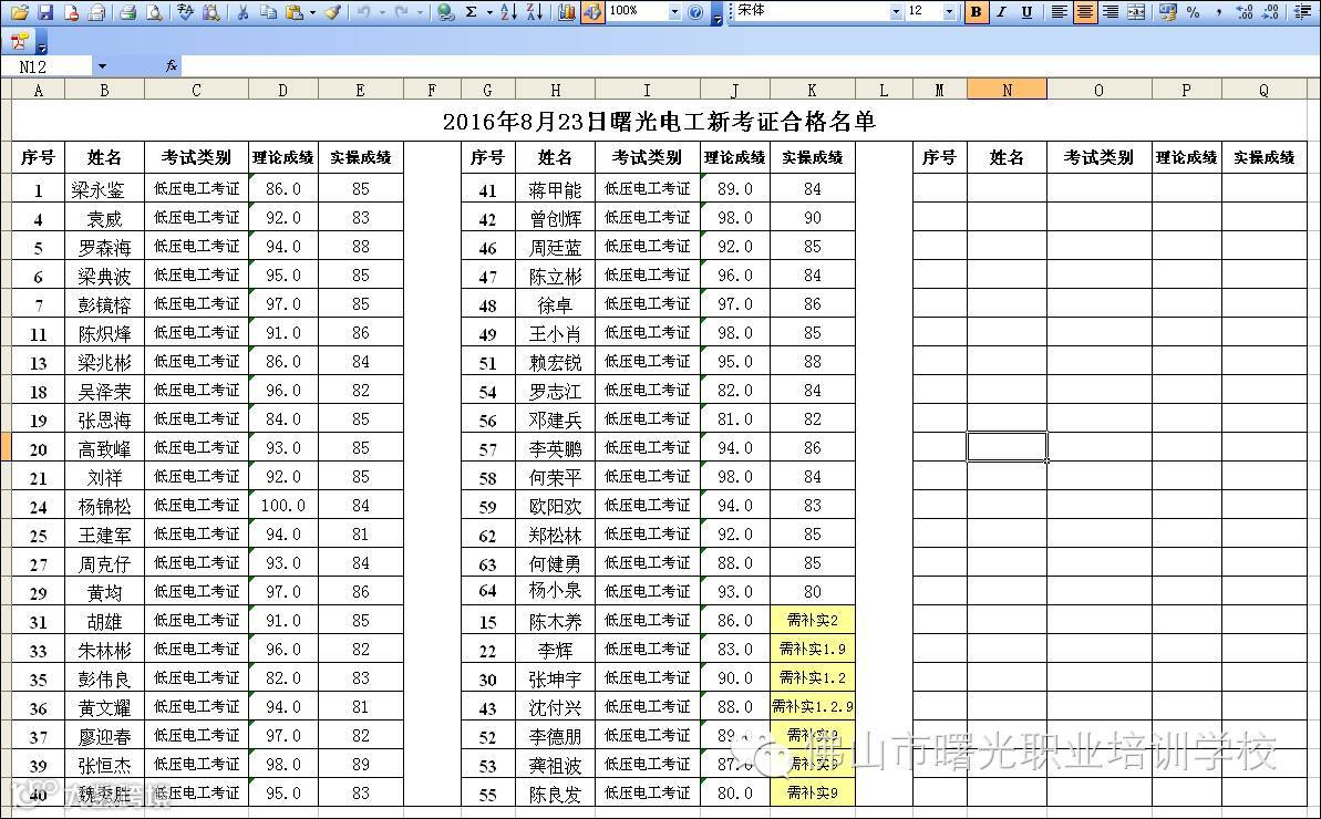 2016.8.23曙光学校电工考证合格名单