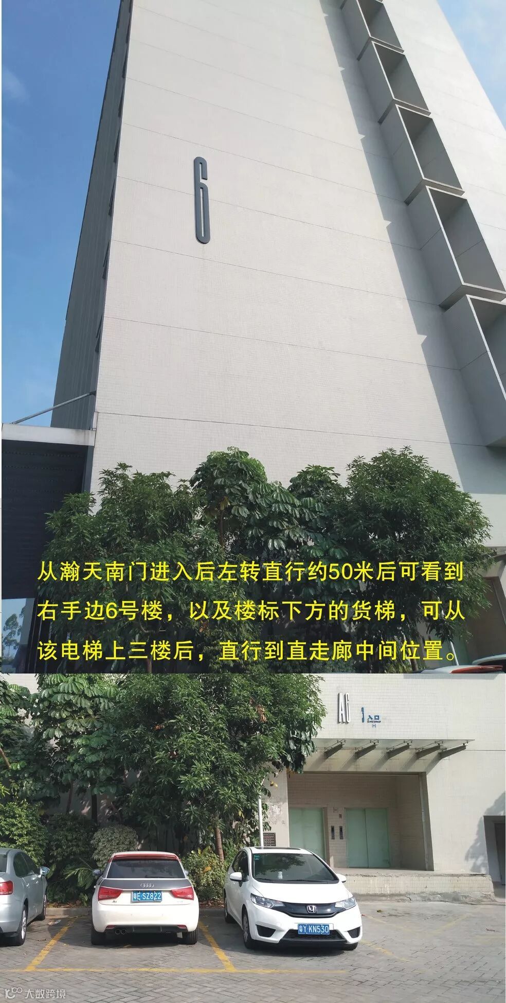 自驾车前往的,可以直接打开导航软件搜索“瀚天科技城A6号楼”,同属6号楼比较显眼的其他标记有:佛山智慧城市体验馆(一楼),旺阁濠苑酒家(二楼),曙光学校/曙安公司位于同一幢楼的三楼,私家车在瀚天科技城内停车2小时以内免费。