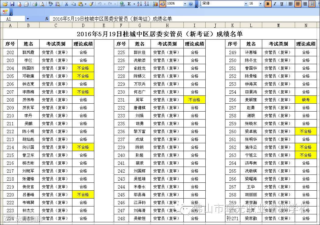 67殷剑青、98彭江华、157张相勇、221郭华怀、234姜永斌、238郭金成、255邓敏信(以上7人欠交资料,所以不能安排参加考试)