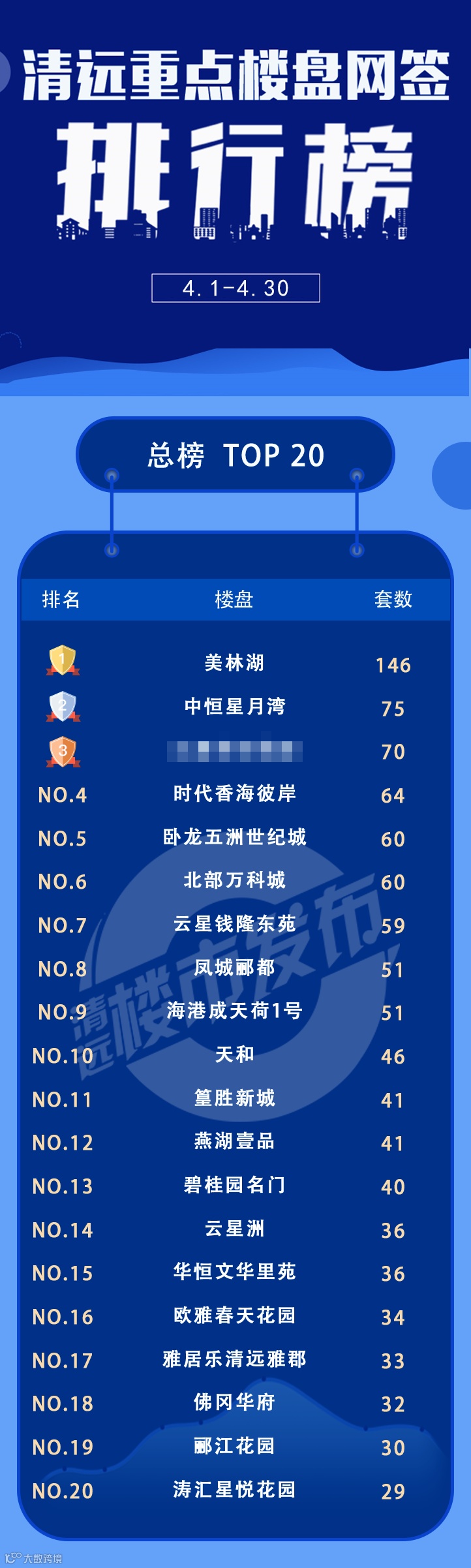 其中,排名第二、第三的楼盘4月网签套数加起来也没有美林湖高。